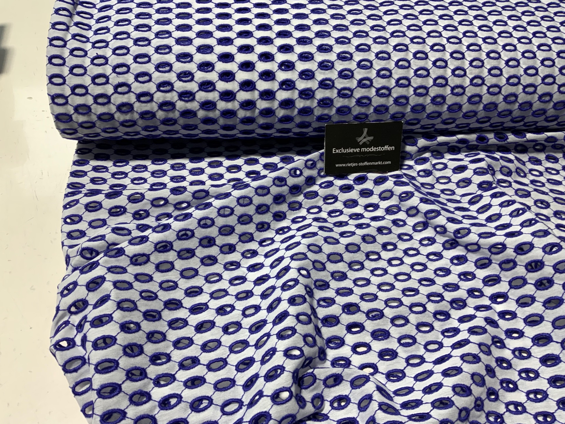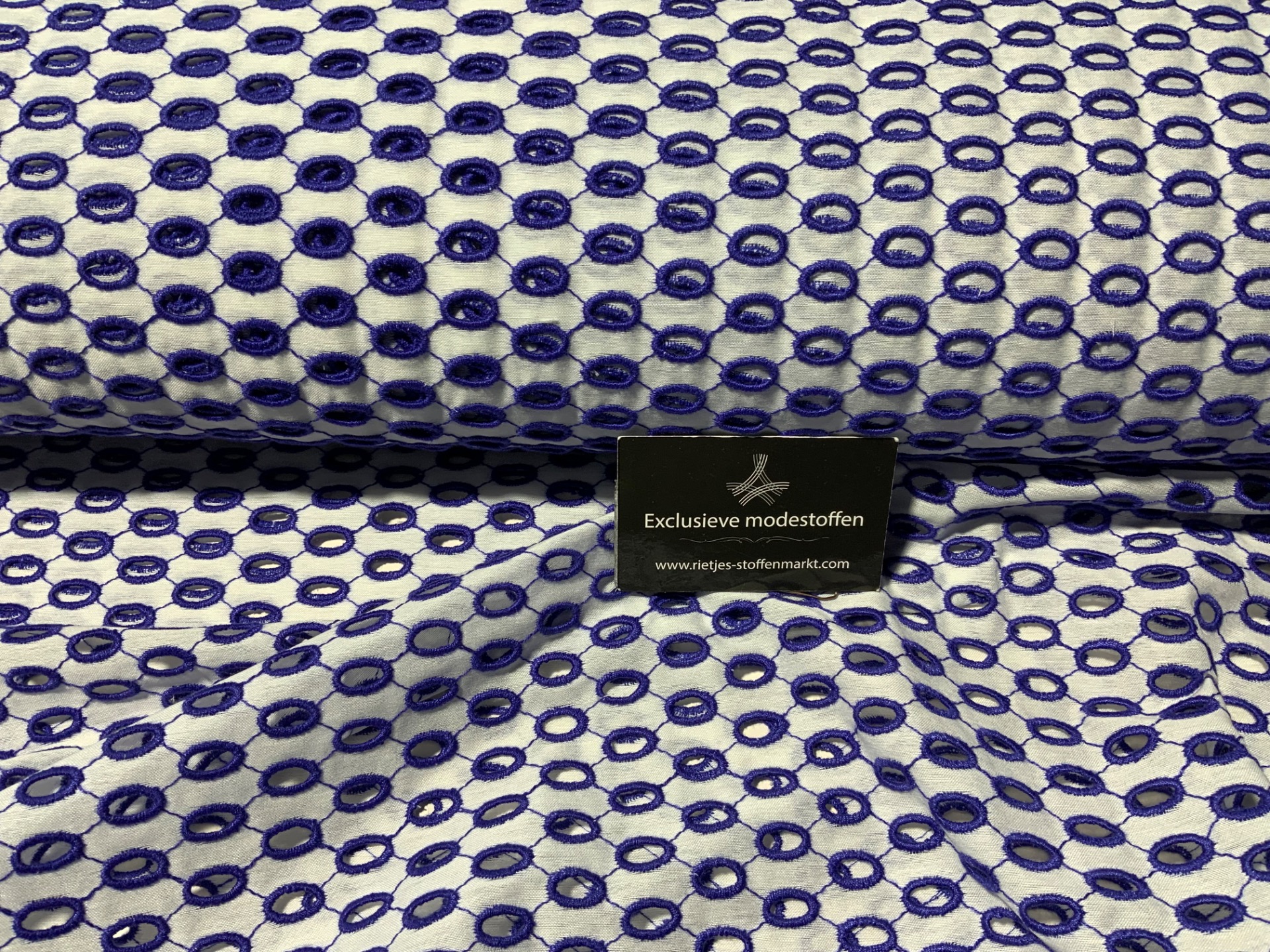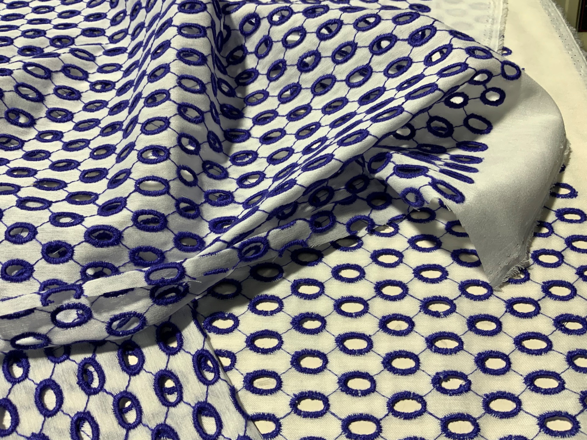 farbe royal blau weis Lochstickerei